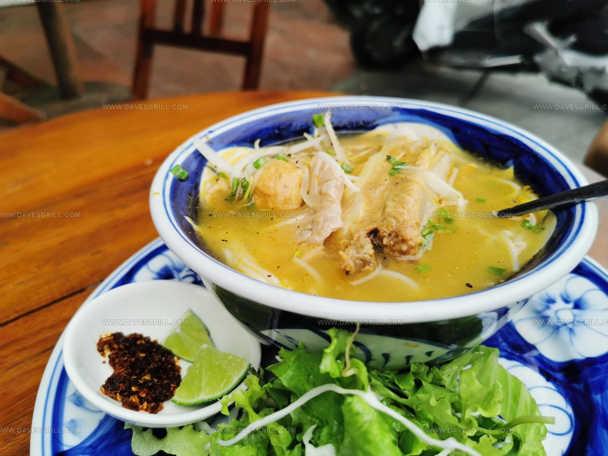 Local Go Cat rice creates uniquely crunchy noodles that set this dish apart from other regional soups.