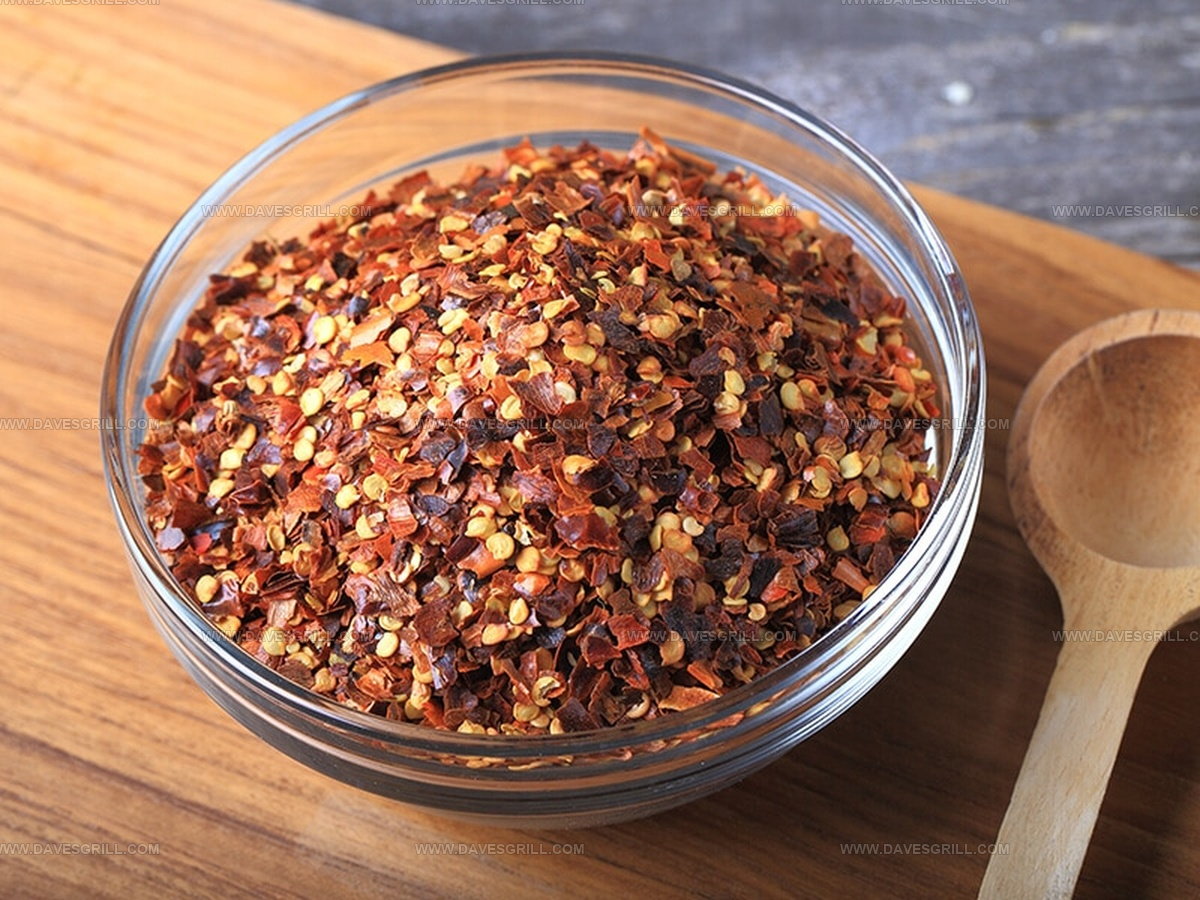 After drying, the peppers are crushed along with their seeds, which contributes to the flakes' heat and texture.