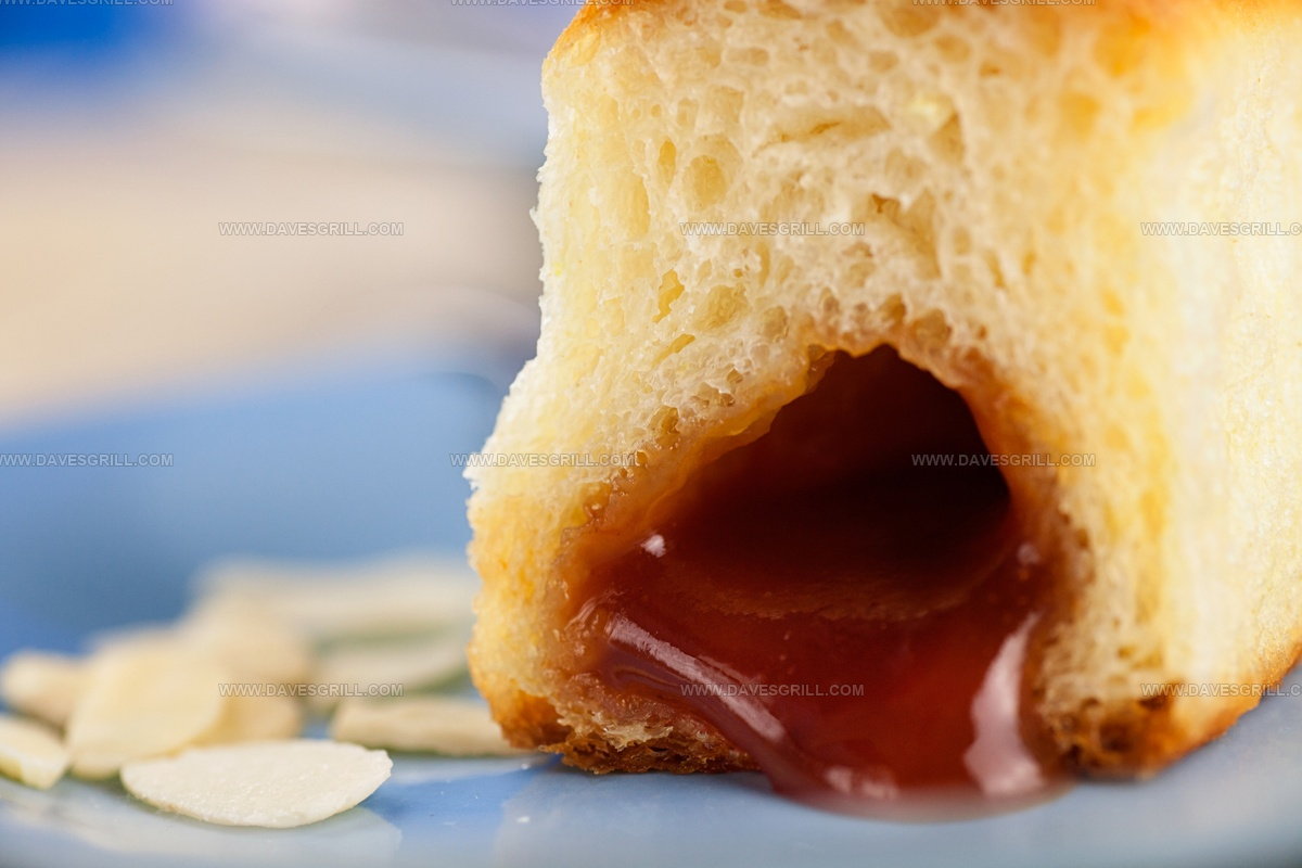 Austrian bakers craft this treat by creating a sandwich using two bread slices filled with powidl, a traditional plum jam spread.