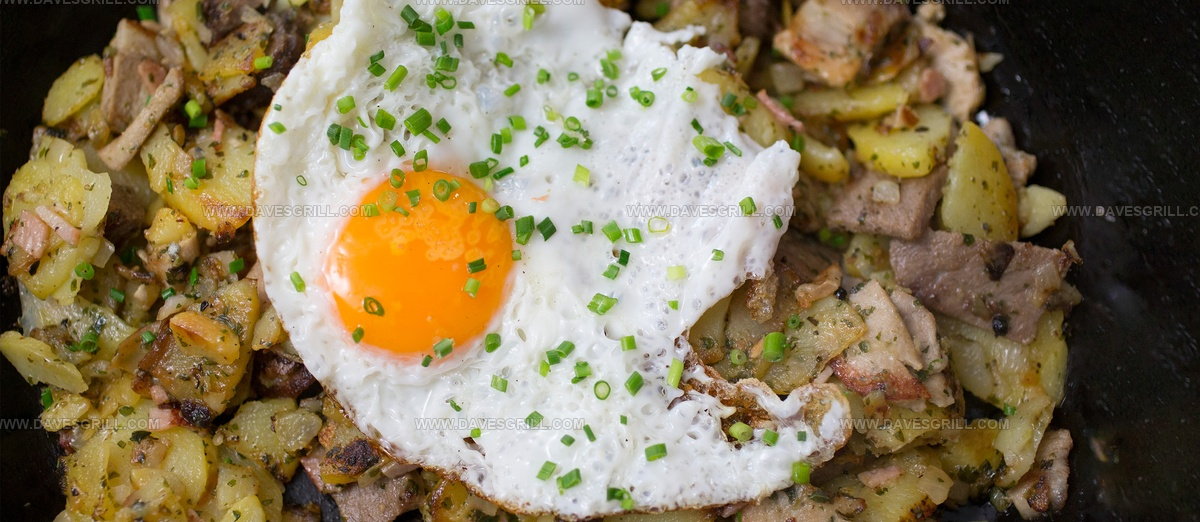 Crispy potatoes, caramelized onions, and smoky bacon form the core ingredients of this hearty skillet dish traditionally prepared with leftover meats.