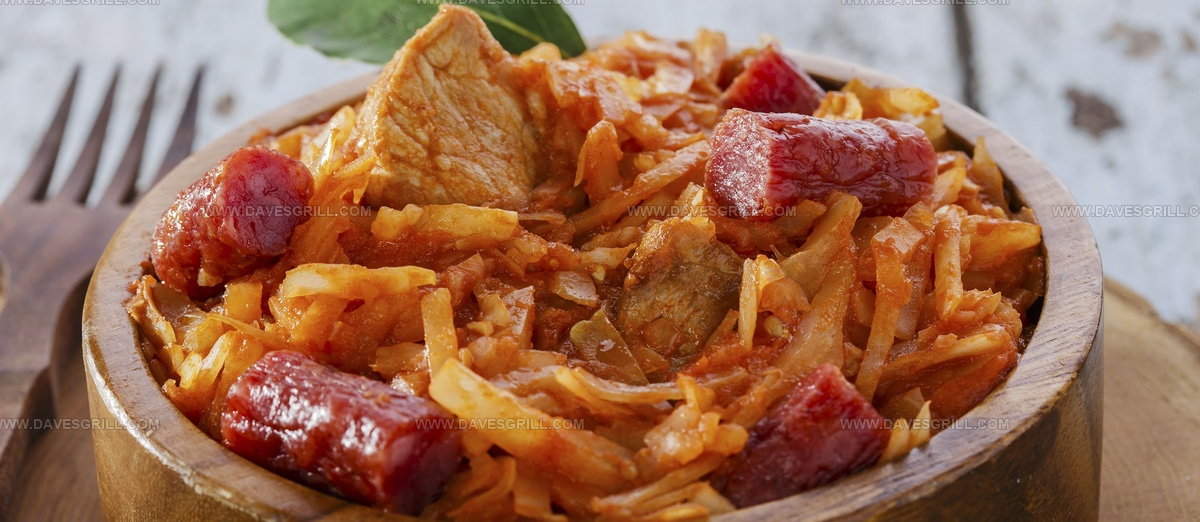 Polish families typically prepare this hearty dish with pork, kielbasa, and bacon as primary protein sources.