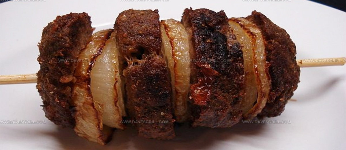 Traditional preparation involves carefully frying the skewers until meat develops a crispy exterior and onions turn sweet and translucent.