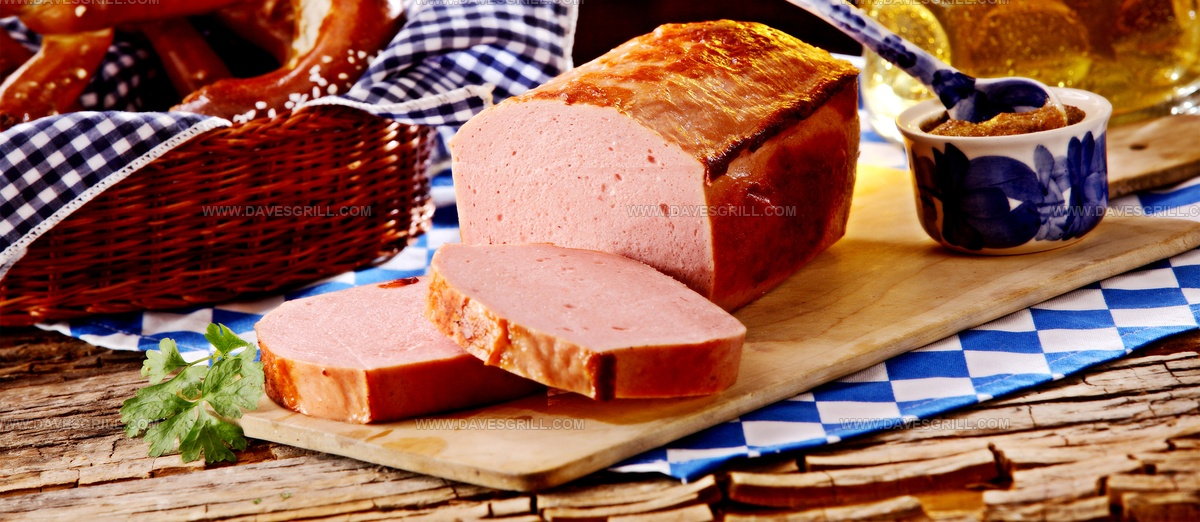 German butchers carefully mix high-quality meats with onions and spices before baking the mixture into rectangular blocks with a golden-brown crust.
