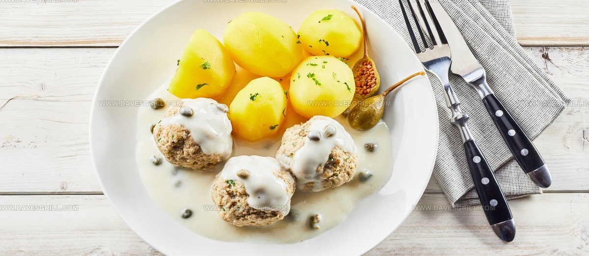 German home cooks traditionally prepare the dish with carefully seasoned meat mixture, forming small round balls before gently simmering them in a white sauce.