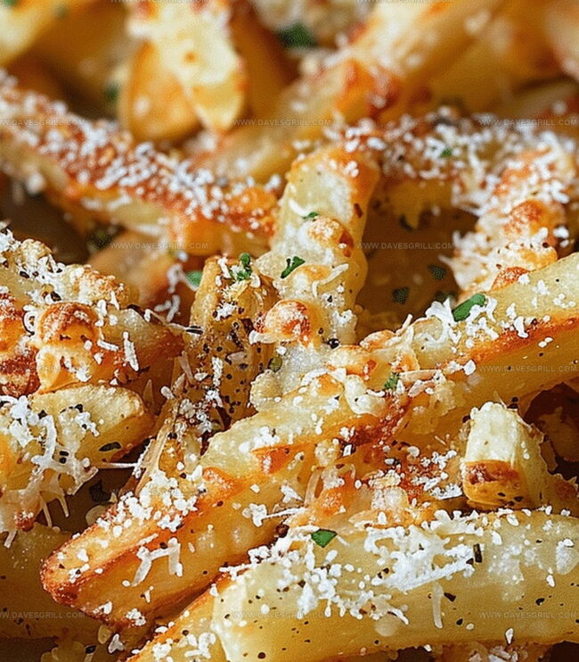 - Immediately after removing from oven, generously dust fries with grated Parmesan cheese, gently tossing to create an even, savory coating.