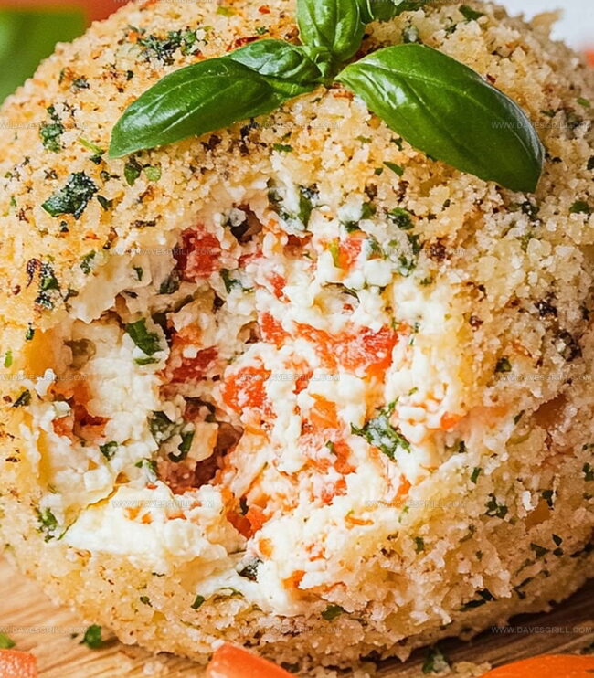 This cheese ball combines the classic flavors of bruschetta with a creamy, shareable format. It blends traditional Italian ingredients like sun-dried tomatoes, fresh basil, and multiple cheeses into one delicious, crowd-pleasing dish that’s perfect for gatherings.