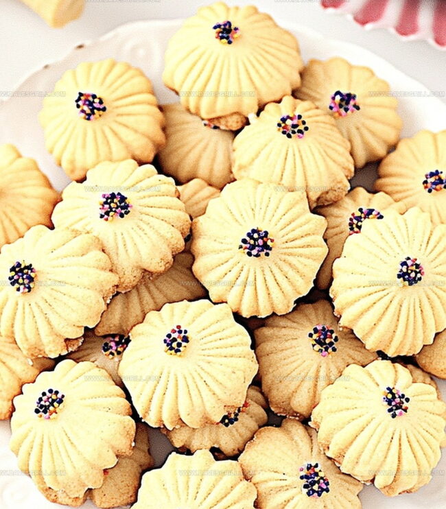 Ensure your butter is at the right temperature – softened but not melted. Chill the piped cookies for 10-15 minutes before baking to help them maintain their shape and prevent excessive spreading.