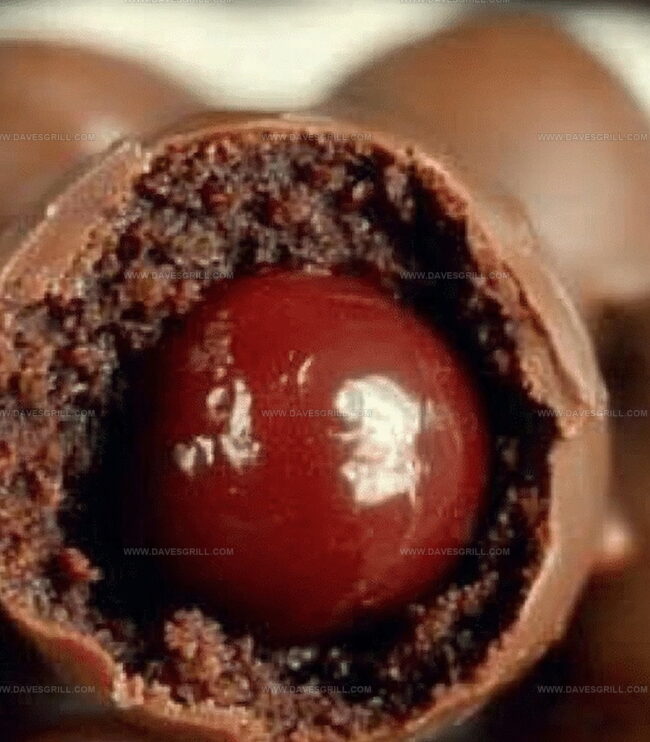 - Systematically arrange the newly formed brownie-encased cherries onto a parchment-lined baking tray. Transfuse the tray into the refrigerator, allowing the orbs to firm up for approximately 25 minutes.