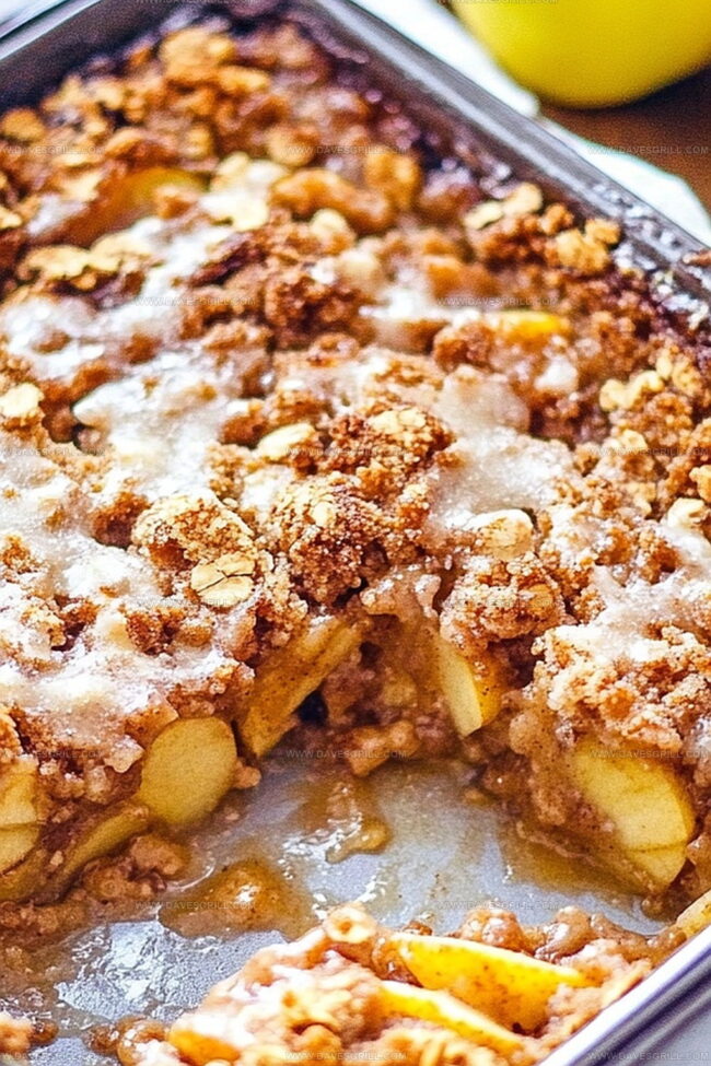 Soft apples blend perfectly with gooey cinnamon swirls, creating a dessert that feels like a delightful embrace.