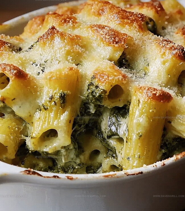 Indulgent Creamy Baked Rigatoni with Spinach, Ricotta & Fontina Recipe