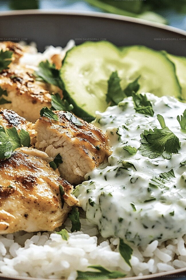 Add Zesty Cucumber Raita: Include a side of cucumber raita to amplify the cooling, yogurt-based sauce and provide an extra layer of creamy, herbal freshness that complements the chicken.