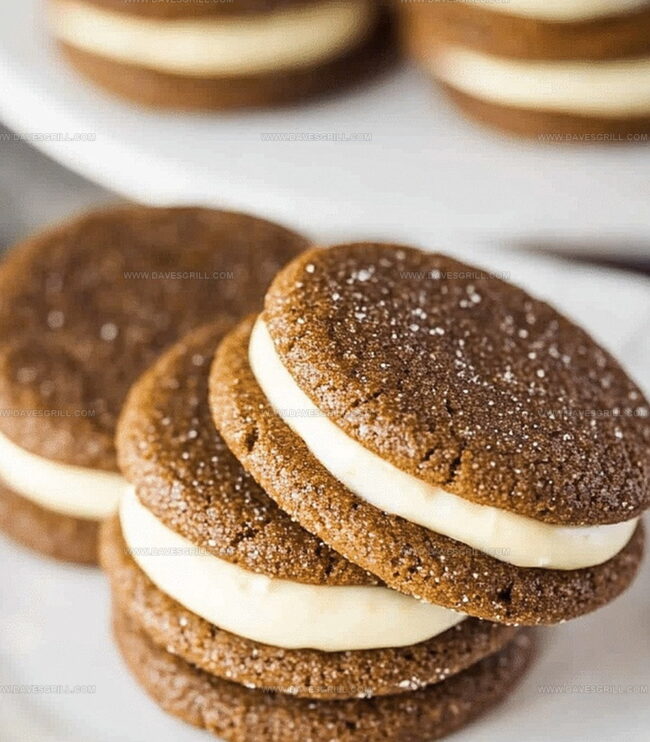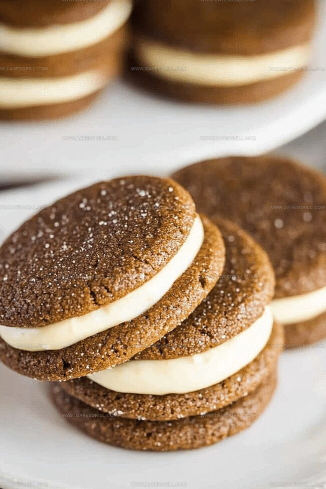Classic ginger molasses sandwich cookies with eggnog frosting offer a delightful holiday treat from American kitchens. Warm spices and creamy filling create a nostalgic dessert perfect for winter celebrations and sharing with loved ones.