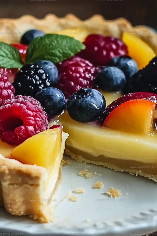 Sweet summer memories dance through this delightful fruit tart that whispers of childhood picnics and lazy afternoon treats.