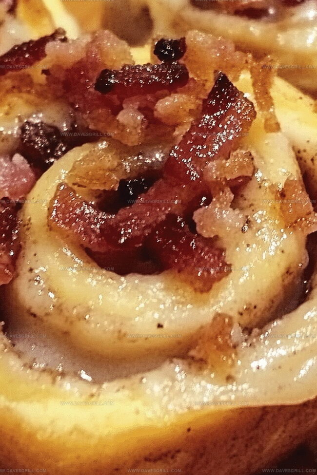 Crispy bacon bits dance through rich, soft dough swirled with cinnamon and brown sugar.
