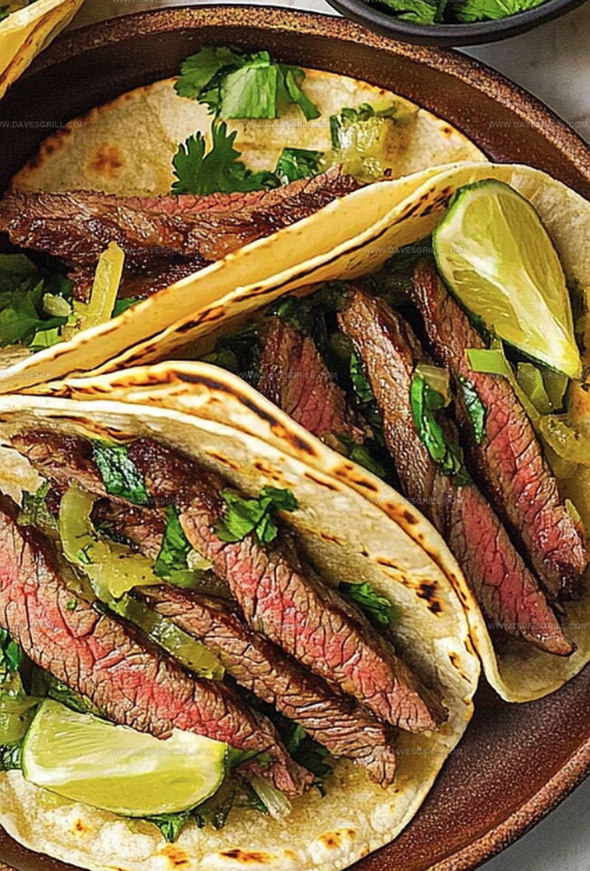 Cilantro, Cheese, Salsa, Lime Wedges: Fresh garnishes that enhance the overall taco experience. Choose toppings that complement the grilled steak and onions.