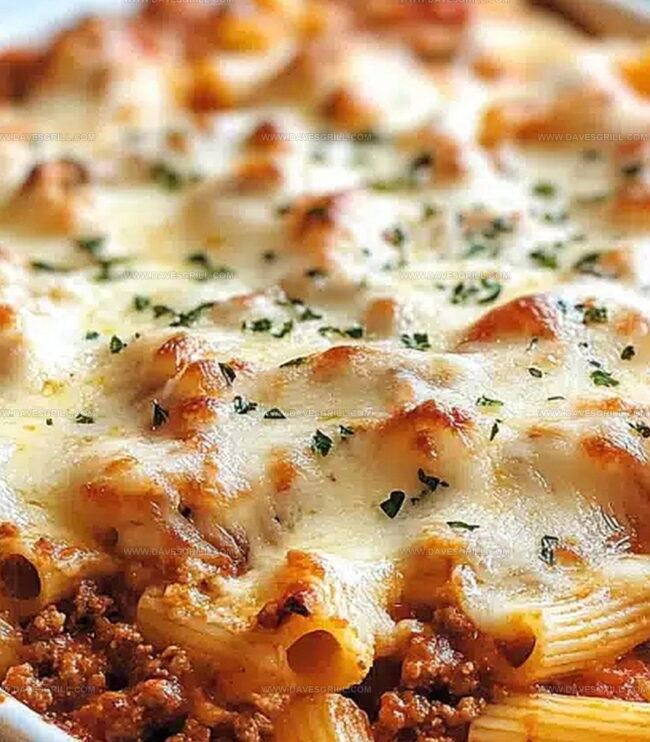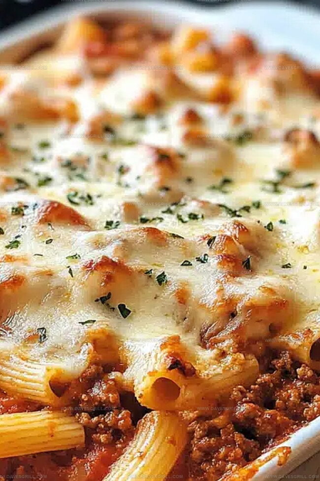 Classic baked ziti with ground beef and ricotta combines hearty pasta with rich Italian-American flavors. Cheesy layers of comfort promise a satisfying meal that brings family together at the dinner table.