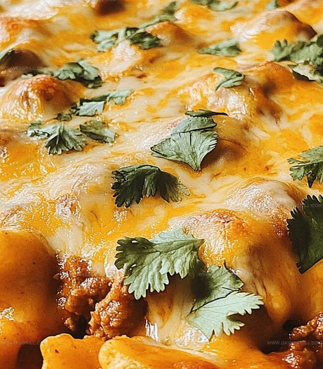 Prevent Soggy Bottom: Use minimal enchilada sauce in the base layer and ensure beef mixture isn’t too wet to maintain a crisp tortilla foundation and prevent mushy texture.