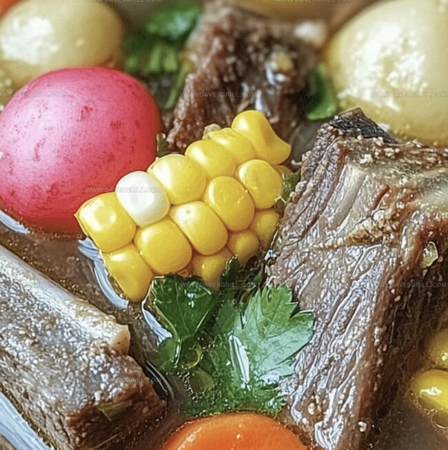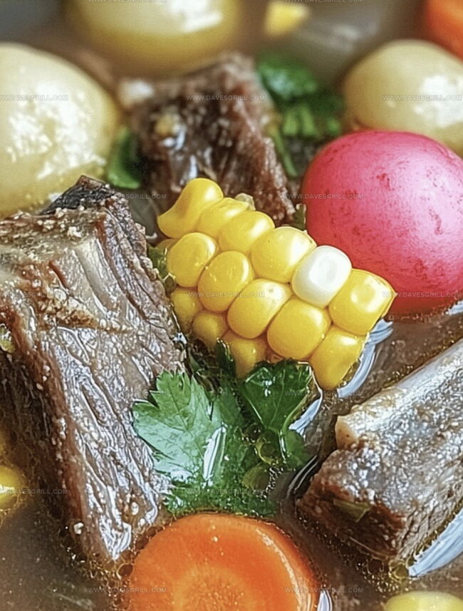 Hearty beef rib soup combines tender meat with sweet carrots, crisp corn, and peppery radish for a comforting meal. Regional Mexican culinary traditions shine through this nourishing bowl you’ll savor with each warming spoonful.