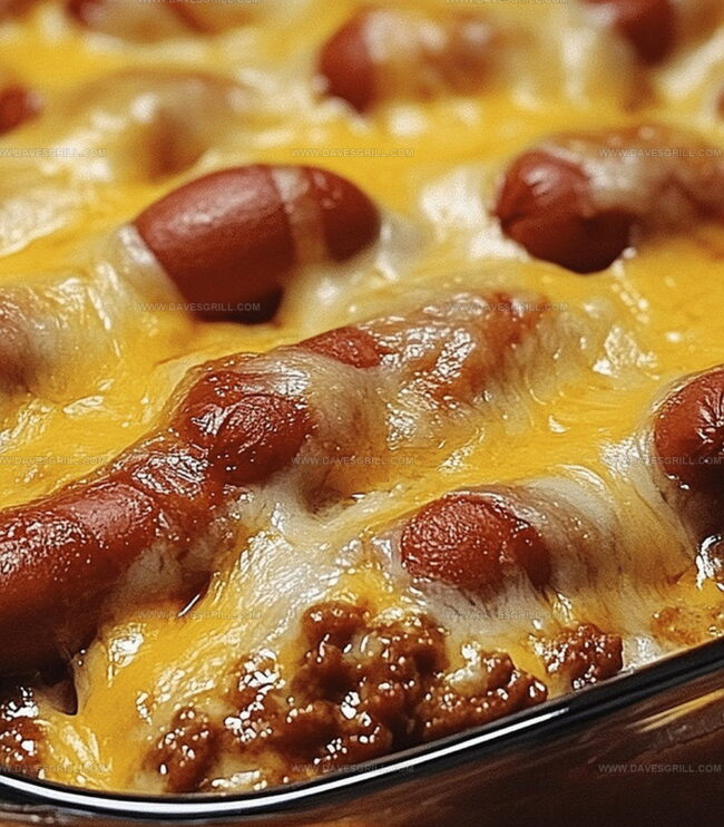 Hearty chili cheese dog casserole brings comfort food nostalgia to classic American dinner tables. Layers of hot dogs, melted cheese, and zesty chili create a satisfying meal perfect for casual gatherings and weekend family dinners.