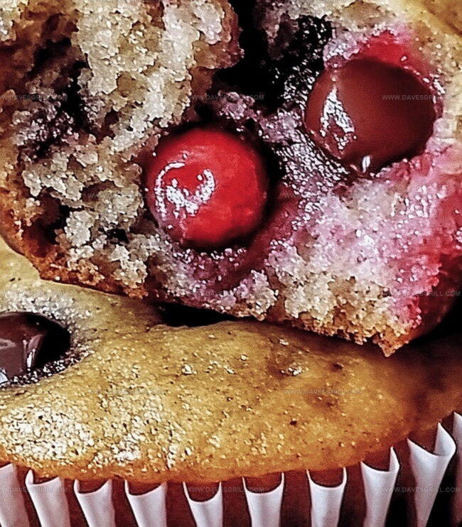 Sweet mornings spark to life with these delectable cherry chocolate chip muffins that blend rich chocolate and tangy cherries into a perfect breakfast treat.