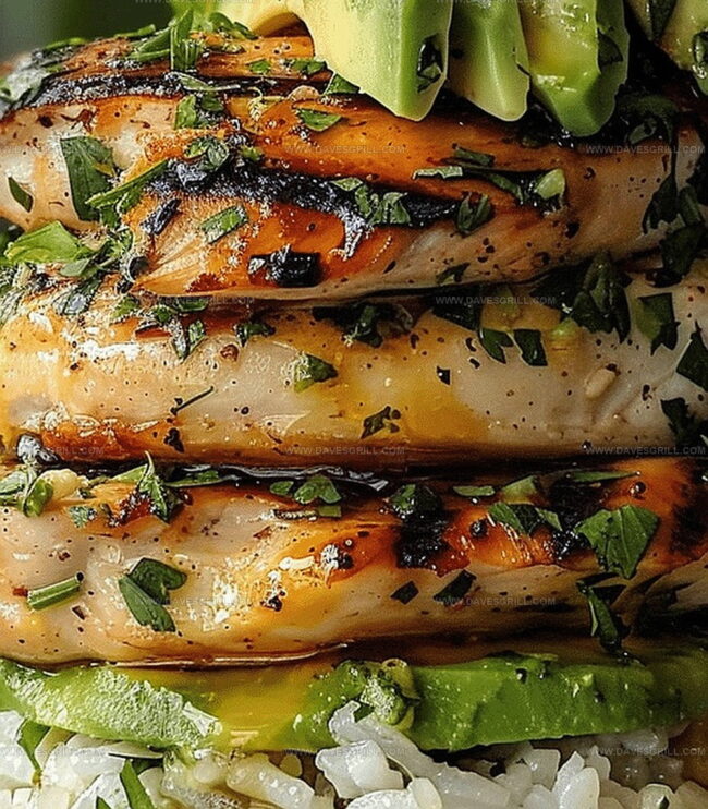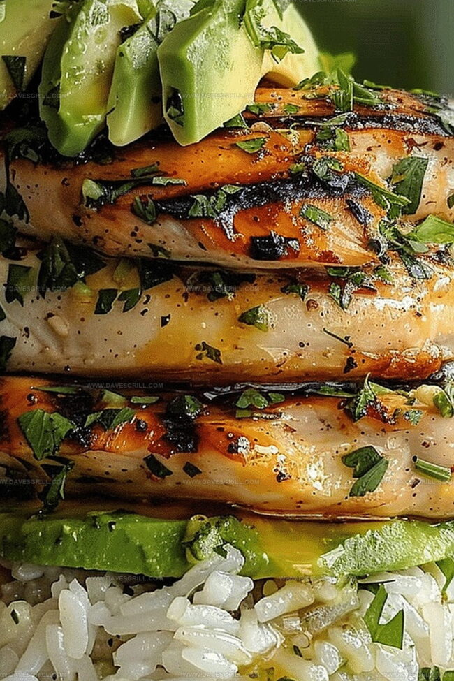 - Construct an elegant stack by spreading a generous bed of fragrant rice on serving plates. Layer creamy avocado slices atop the rice, then crown with sliced grilled chicken. Enhance the presentation by scattering fresh cilantro and serving with zesty lime wedges to brighten the overall dish.
