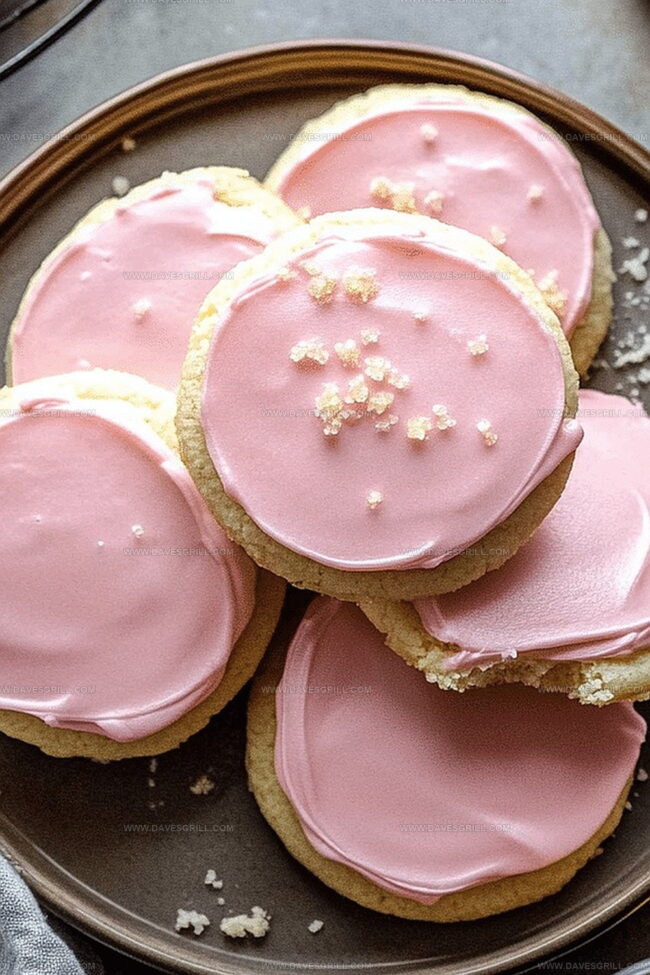 The creamy, vibrant pink frosting makes these cookies stand out at any gathering or family dessert night.