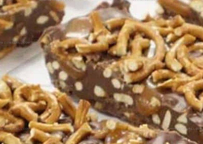Crispy pretzels cradle a golden caramel layer, promising unbelievable texture in each bite.