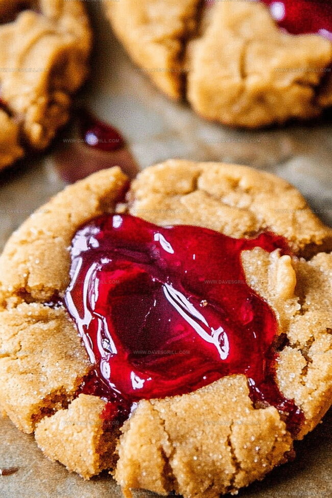 - Delicately fill each cookie’s indentation with a dollop of jelly, selecting from vibrant options like grape, strawberry, or raspberry to enhance the flavor profile.
