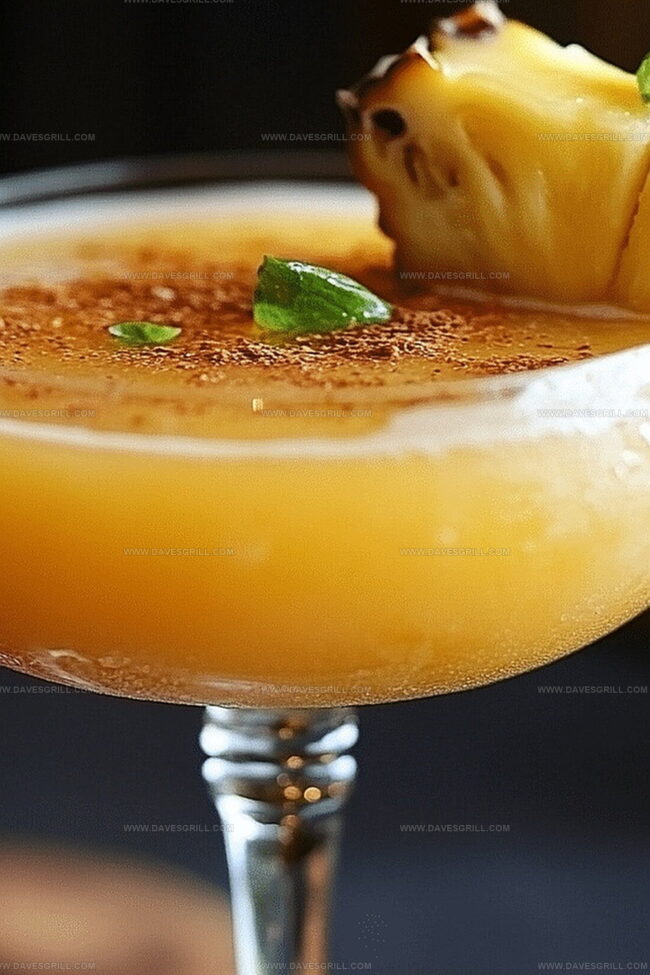 - Garnish the cocktail with a fresh, juicy pineapple wedge and a delicate mint leaf, positioned artfully on the rim.