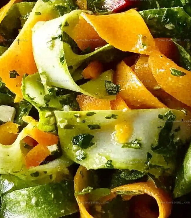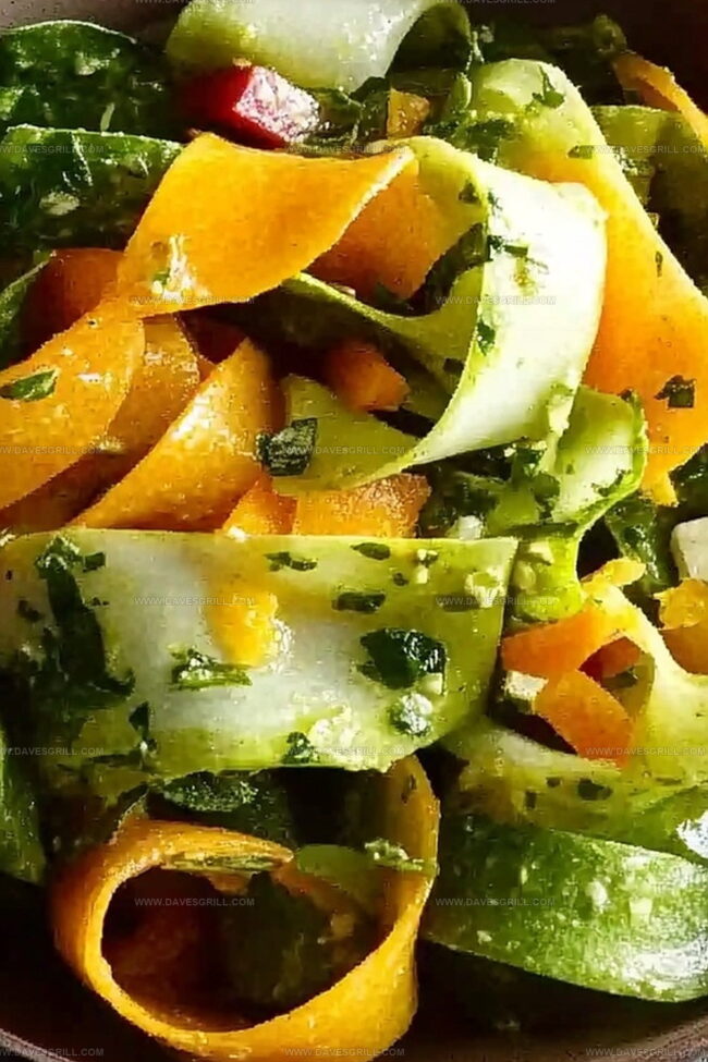 Grab your trusty vegetable peeler or mandoline and transform carrots, zucchini, squash, and cucumber into delicate, elegant ribbons. Gently guide your tool along the length of each vegetable, creating long, silky strips. Collect these colorful ribbons in a spacious mixing bowl, letting them pile up like a vibrant edible artwork.
