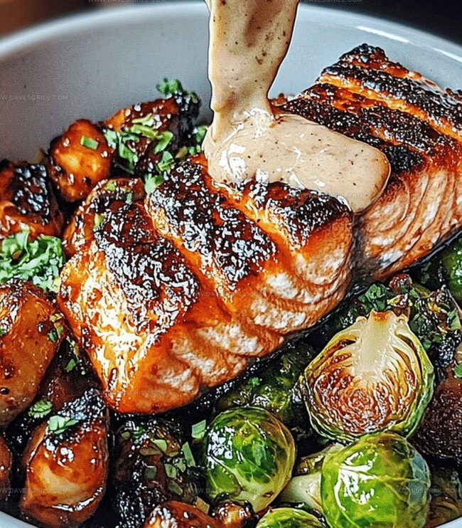 Delectable Teriyaki Salmon Bowls with Crispy Brussels Sprouts merge Japanese-inspired flavors for a quick weeknight dinner. Salmon glazed with sweet-tangy sauce nestles alongside roasted sprouts, creating a balanced meal that satisfies both nutrition and taste preferences.