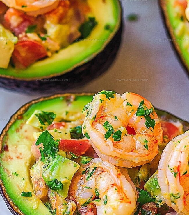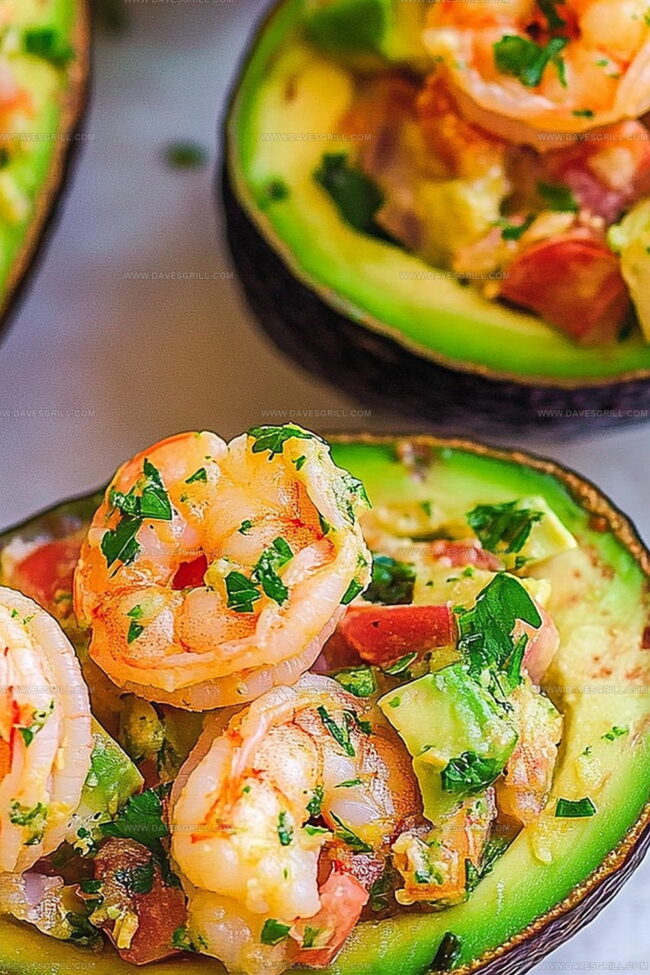 Squeeze a little extra lime juice over the avocado halves before adding the shrimp mixture. The citric acid helps slow down oxidation and keeps your avocados looking fresh and green.