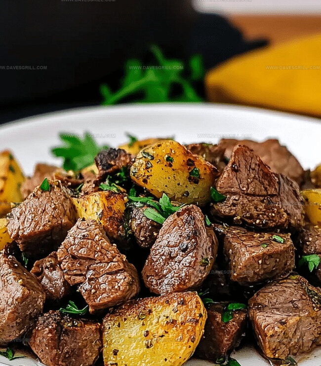 Reunite the crispy potatoes with the seared steak bites in the skillet. Give everything a quick toss, letting the flavors mingle and heat through for another 1-2 minutes. For a fresh finish, sprinkle chopped parsley over the top if you want an extra pop of color and flavor.