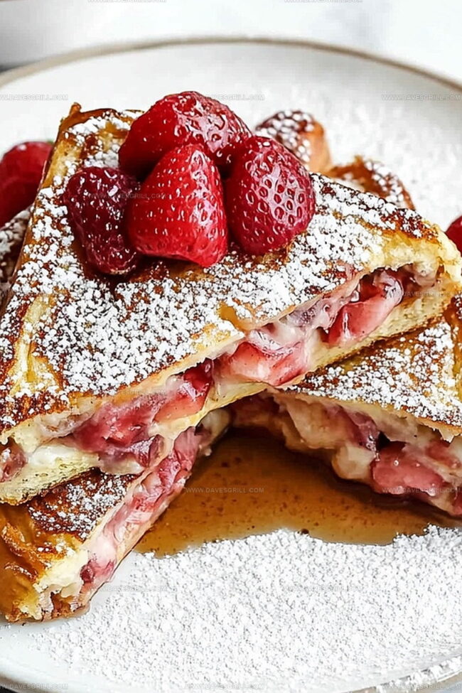 Transfer the gorgeous stuffed French toast to serving plates. Dust with a generous sprinkle of powdered sugar. Accompany with:Enjoy this indulgent breakfast masterpiece while it’s hot and steamy!