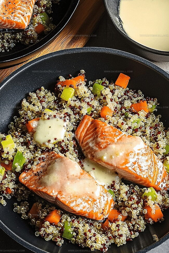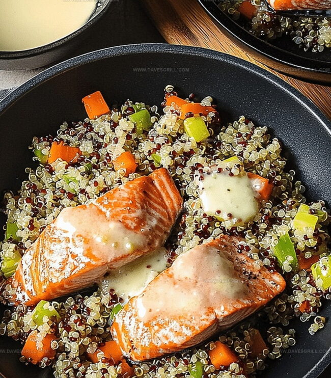 - Dish Assembly: Spread quinoa as the base layer on serving plates. Layer sautéed vegetables over quinoa. Position roasted salmon fillet on top. Drizzle with prepared dressing and garnish with additional parsley or lemon slices for an elegant presentation.