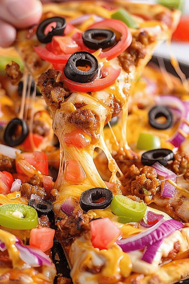 Vegetarian Power Pizza: Replace ground beef with plant-based crumbles, black beans, or roasted vegetable medley like diced bell peppers, zucchini, and mushrooms. Use vegetarian taco seasoning for extra flavor.