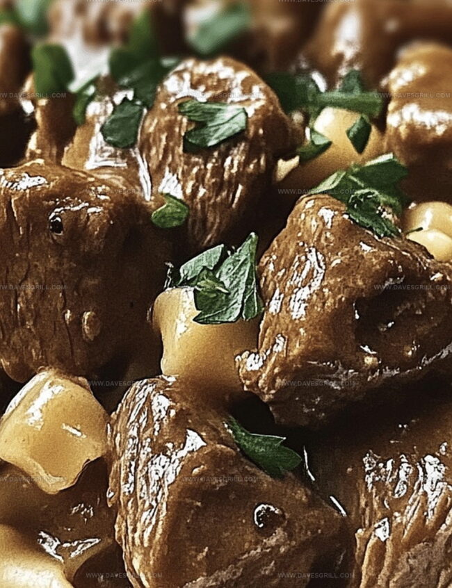 Slow-cooked beef tips with noodles dance with flavor in this hearty, mouthwatering comfort dish that promises rich, satisfying goodness.