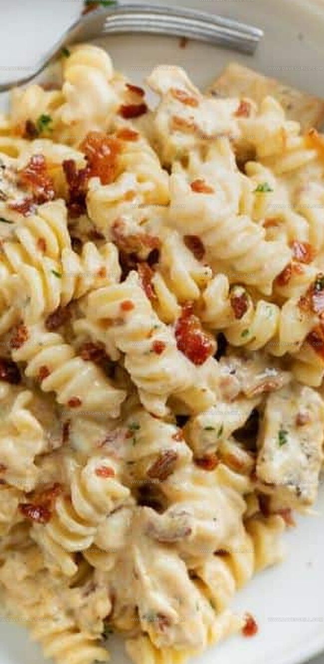 Separately cook pasta until it reaches that perfect al dente texture. Drain and gently fold pasta into the creamy chicken mixture, ensuring every strand gets coated with delicious sauce.