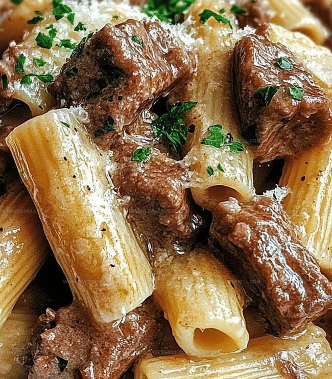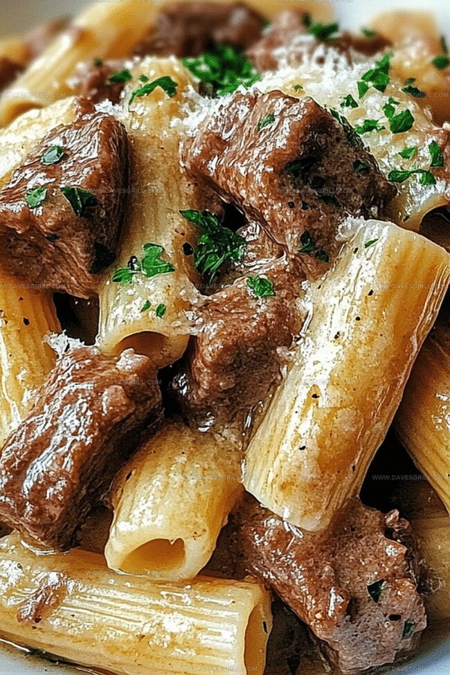 Irresistible Tender Garlic Parmesan Beef with Rigatoni Recipe