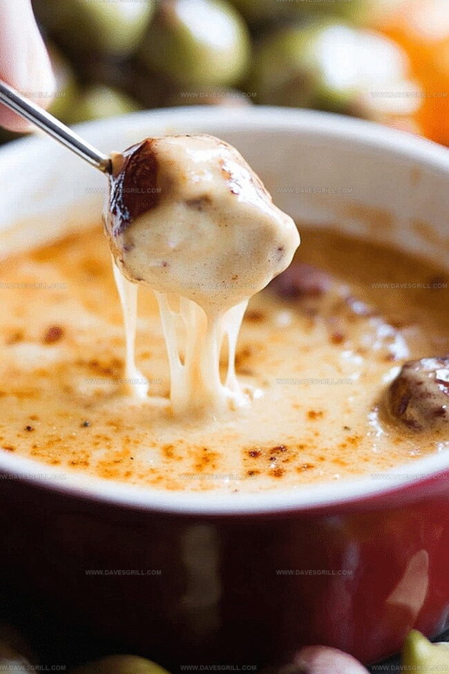 Transfer the fondue to a warm serving area. Surround with crusty bread cubes, crisp vegetables, and whatever dipping treats your heart desires. Invite friends, grab your fondue forks, and dive into this comforting, shareable feast.