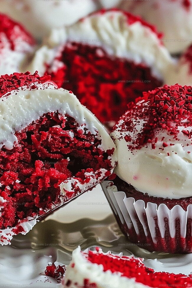 Soft, velvety textures combine with a deep crimson color that makes these cheesecake bites visually stunning.